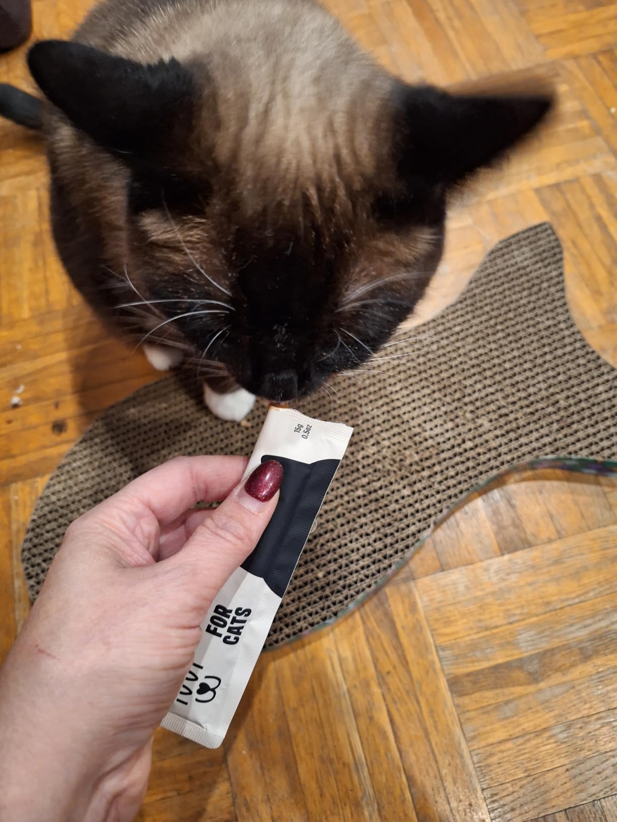 Du kannst den Snack direkt aus der Hand geben oder als Belohnung verwenden. Wir empfehlen, mit der vollen Dosis zu beginnen, da die Schlecksnacks sehr gut verträglich sind. Nach dem Öffnen im Kühlschrank aufbewahren und innerhalb von 2 Tagen verfüttern.